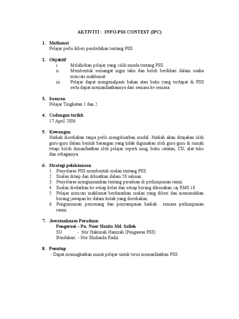 Contoh Kertas Kerja Aktiviti Pss Pdf